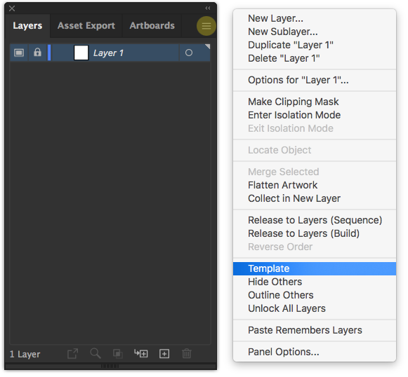 > 레이어 창 메뉴에 Template 실행